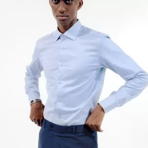 Classic Light Blue Shirt with Mother-of-Pearl Buttons.