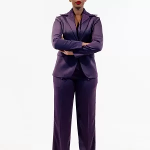 Suit Violet 3 pièces, Veste à double boutonnages, poches latérales fendues, Col en dentelle détachable. Gilet à 3 boutons, bordé en dentelle sur les deux côtés. Pantalon à bouton recouvert, passant ceinture, poches latérales fendues.